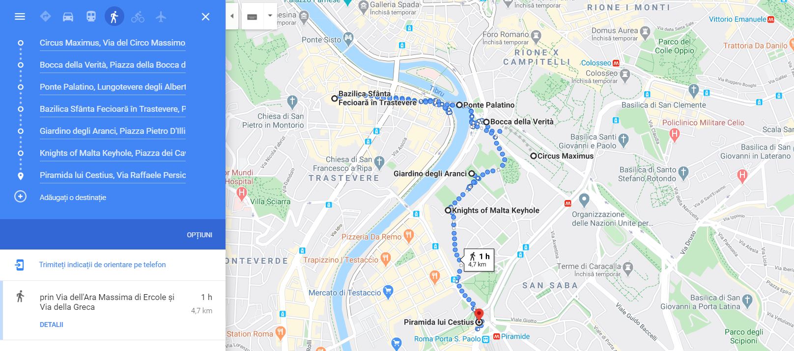 TRASEU ZIUA 3: Circus Maximus - Mouth of Truth - Ponte Palatino - Trastevere - Giardono degli Aranci - Knights of Malta Keyhole - Piramid of Cestitus