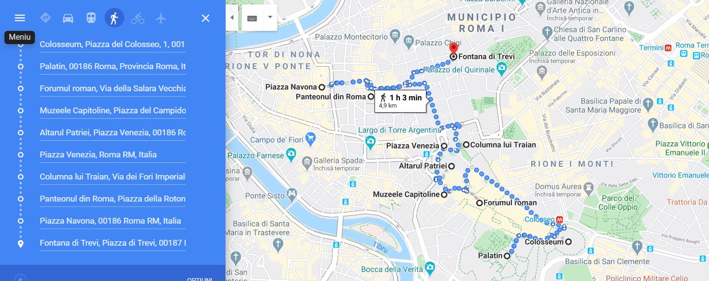 TRASEU ZIUA 4: Colosseum - Palatin Hill - Roman Forum - Muzeele Capitoline - Altarul Patriei - Piata Venetia - Columna lui Traian - Panteonul - Piata Navona - Fantana Trevi